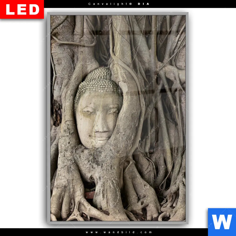 Canvalight® DIA Leuchtbild | Buddha in Baumwurzeln | Hochformat