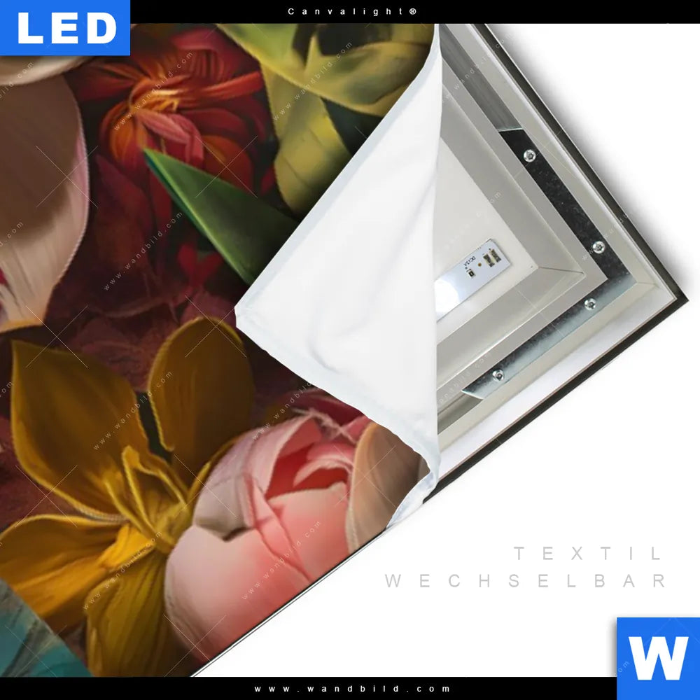 LED-Textilrahmen-Bild mit austauschbarem Buddha - Feng Shui, Blumen - Botanik Textil-Druck (Wechselbild)