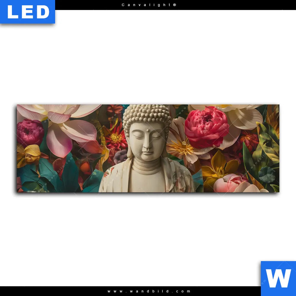 Canvalight® Leuchtbild | Buddha in farbenfrohen Blumen | Panorama