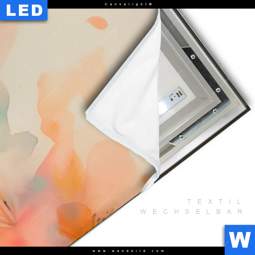 LED-Textilrahmen-Bild mit austauschbarem Buddha - Feng Shui, Blumen - Botanik Textil-Druck (Wechselbild)