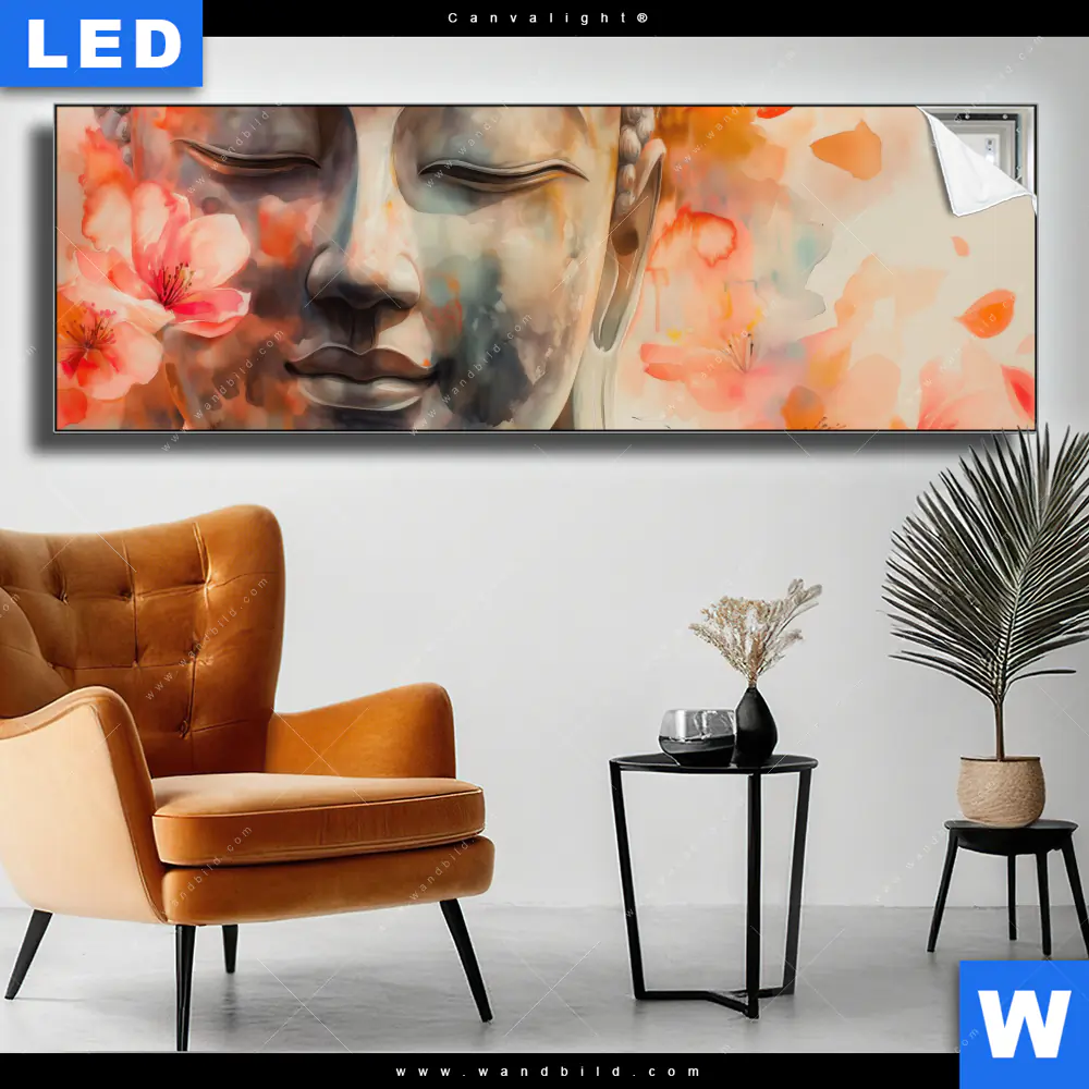 Canvalight® Leuchtbild | Meditativer Buddha in Blumen | Panorama