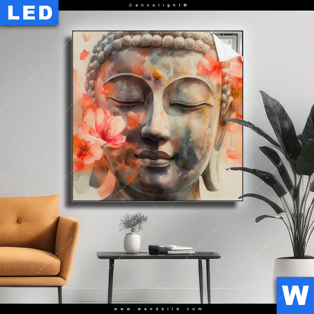 Canvalight® Leuchtbild | Meditativer Buddha in Blumen | Quadrat