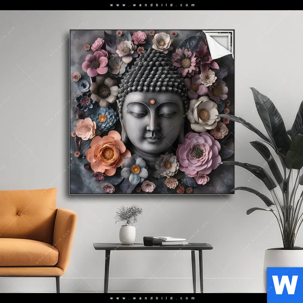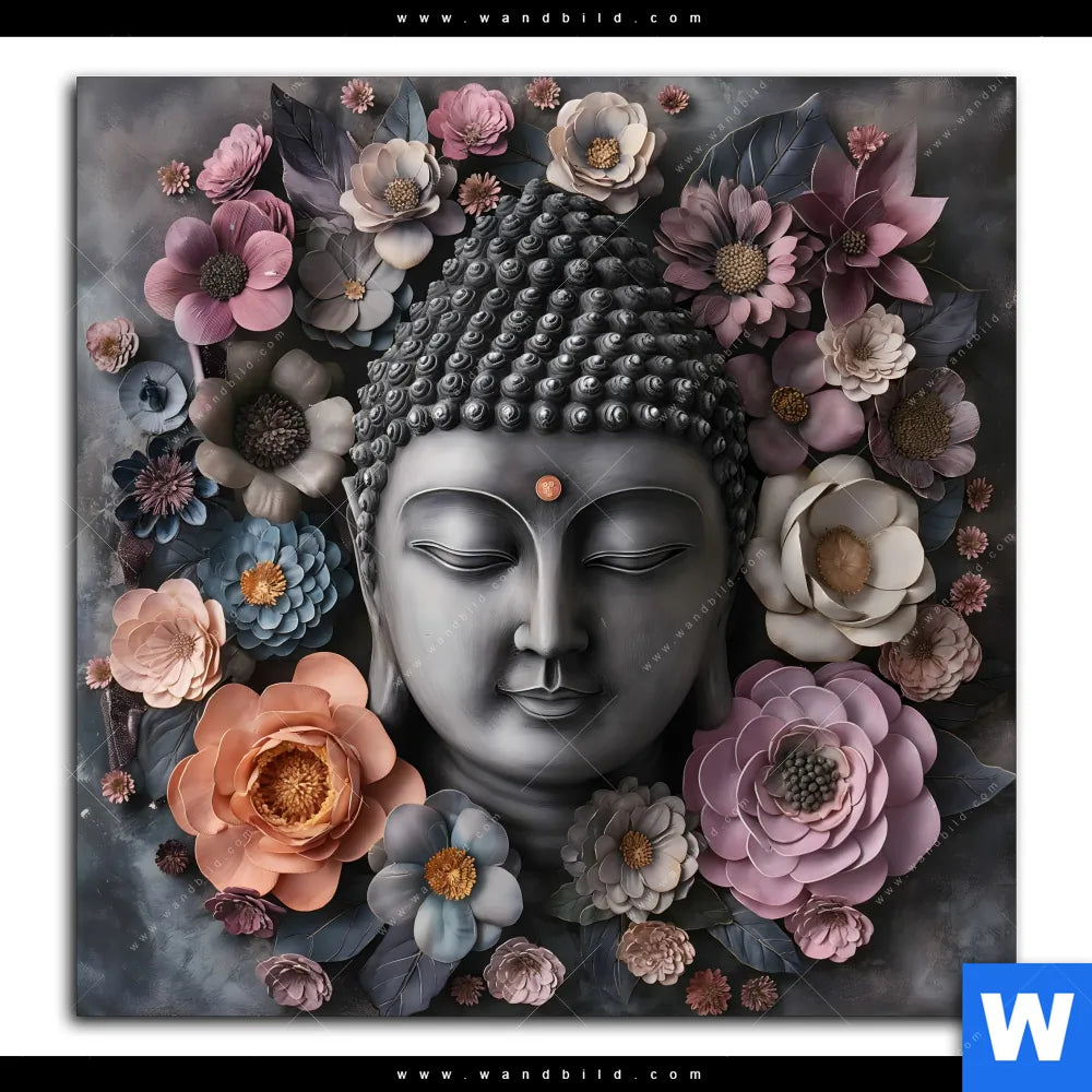 Spannbild | Buddha-Kunst mit Pastellblüten | Quadrat