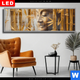 Wechselmotiv Acrylglas Canvalight® DIA | Buddha-Statue im goldenen Bambus | Hochformat