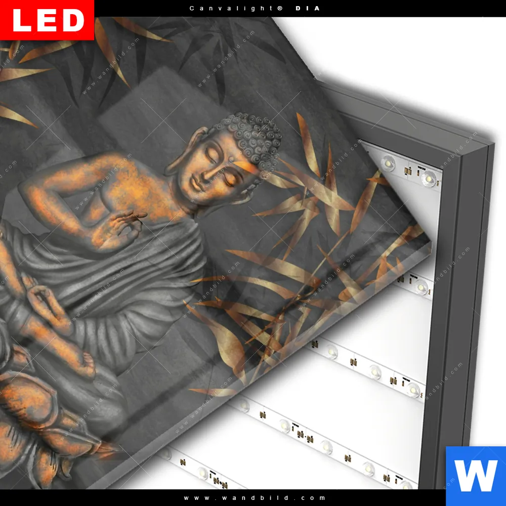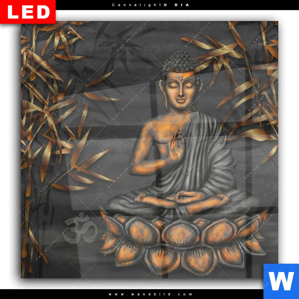 Wechselmotiv Acrylglas Canvalight® DIA | Goldener Buddha & Bambus | Quadrat