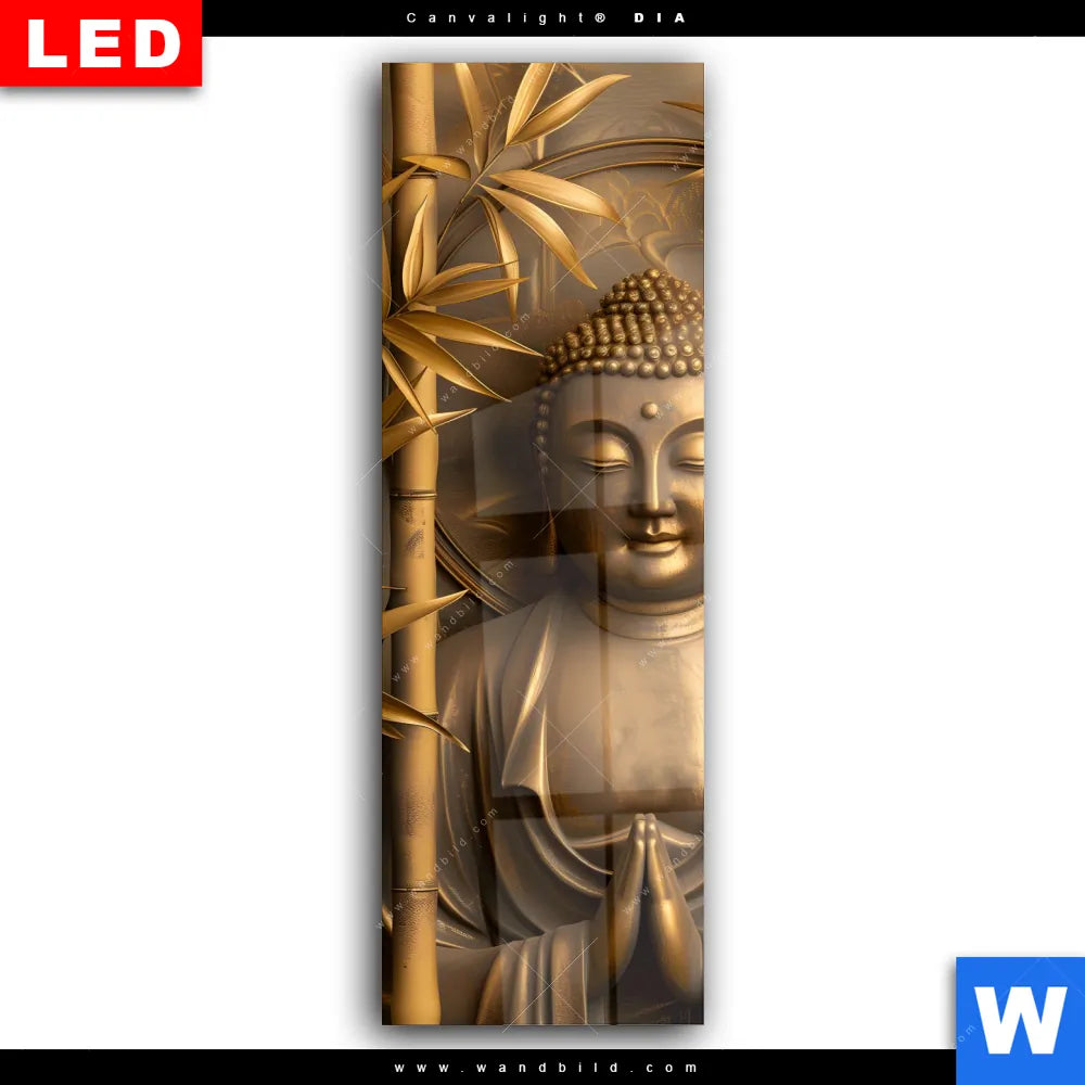 Wechselmotiv Acrylglas Canvalight® DIA | Goldener Buddha im Bambuswald | Schmal