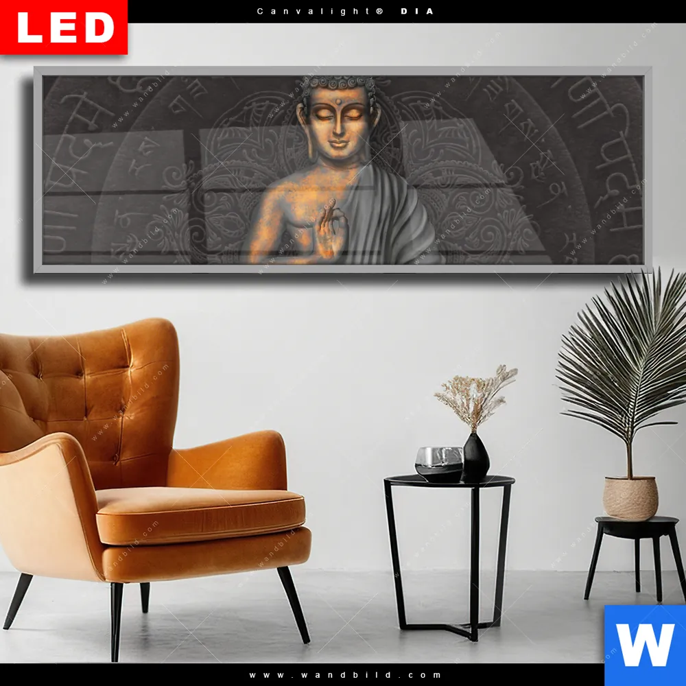 Wechselmotiv Acrylglas Canvalight® DIA | Goldener Buddha | Panorama