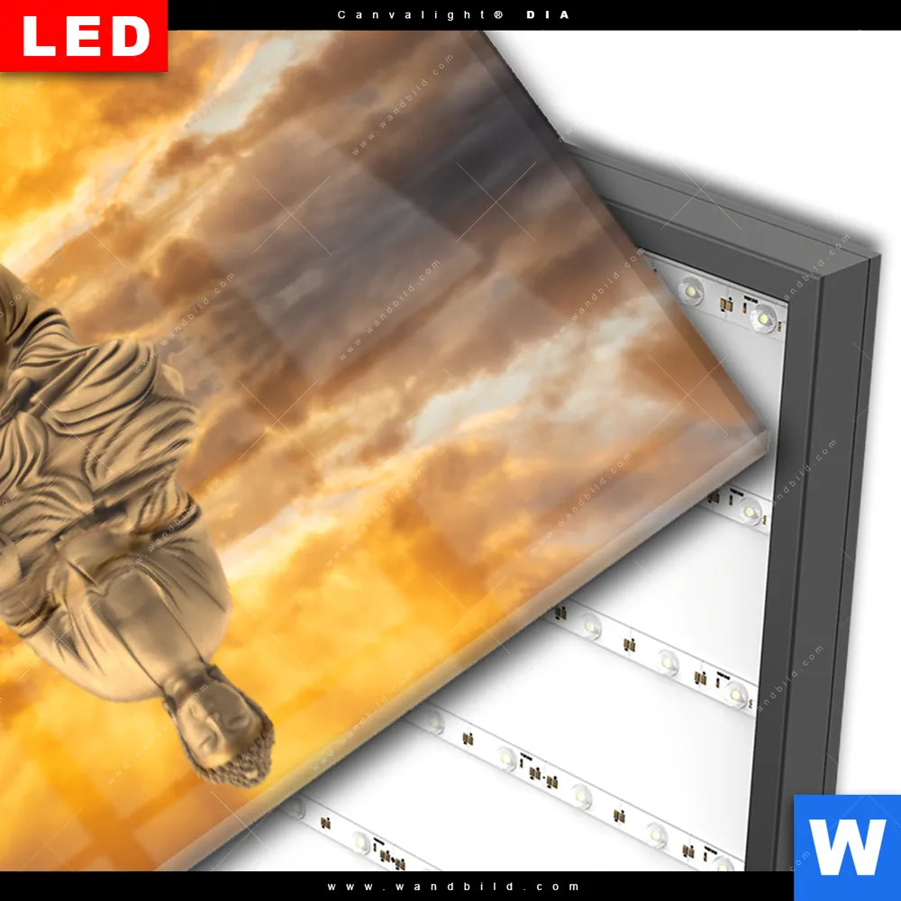 Wechselmotiv Acrylglas Canvalight® DIA | Meditierender Buddha am See | Querformat