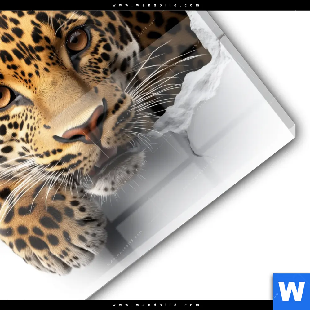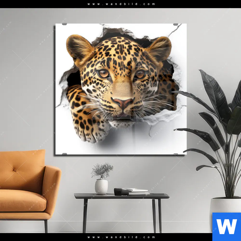 Acrylglasbild | Wanddurchbruch - Leopard | Quadrat