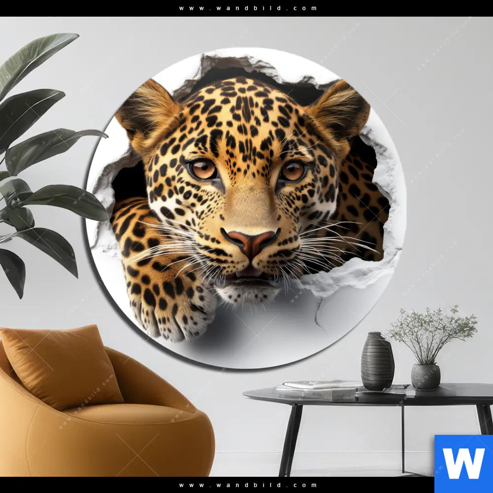 Alu-Dibond Bild | Wanddurchbruch - Leopard | Rund