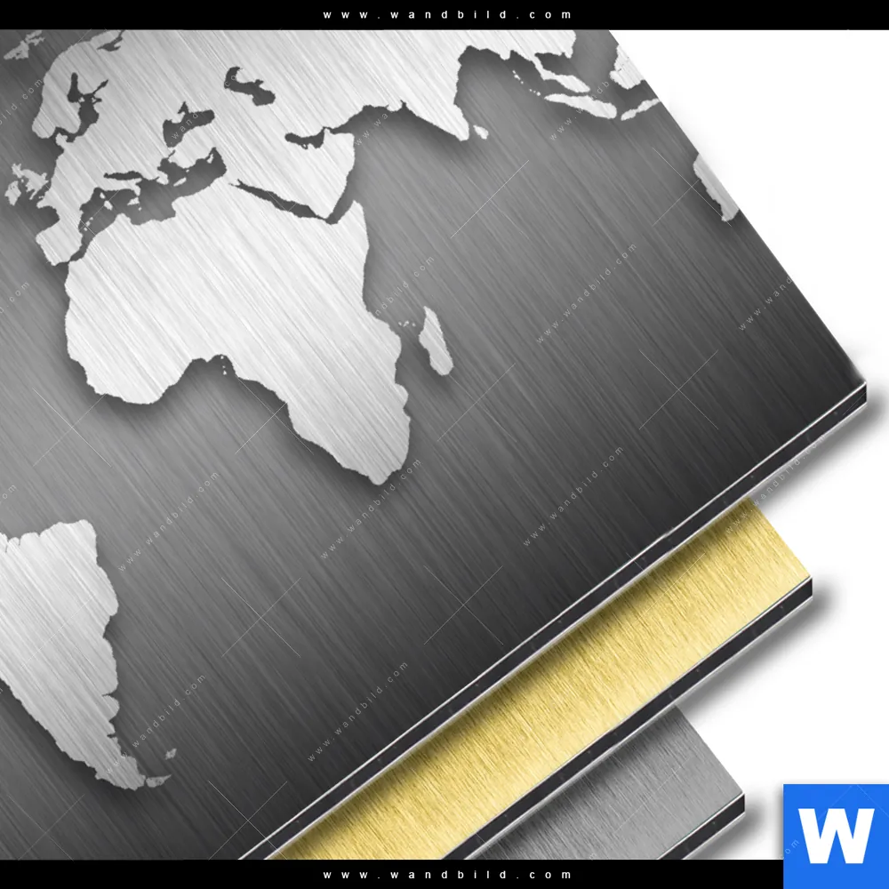Aluminiumbild gebürstet | Weltkarte Edelstahloptik | Quadrat