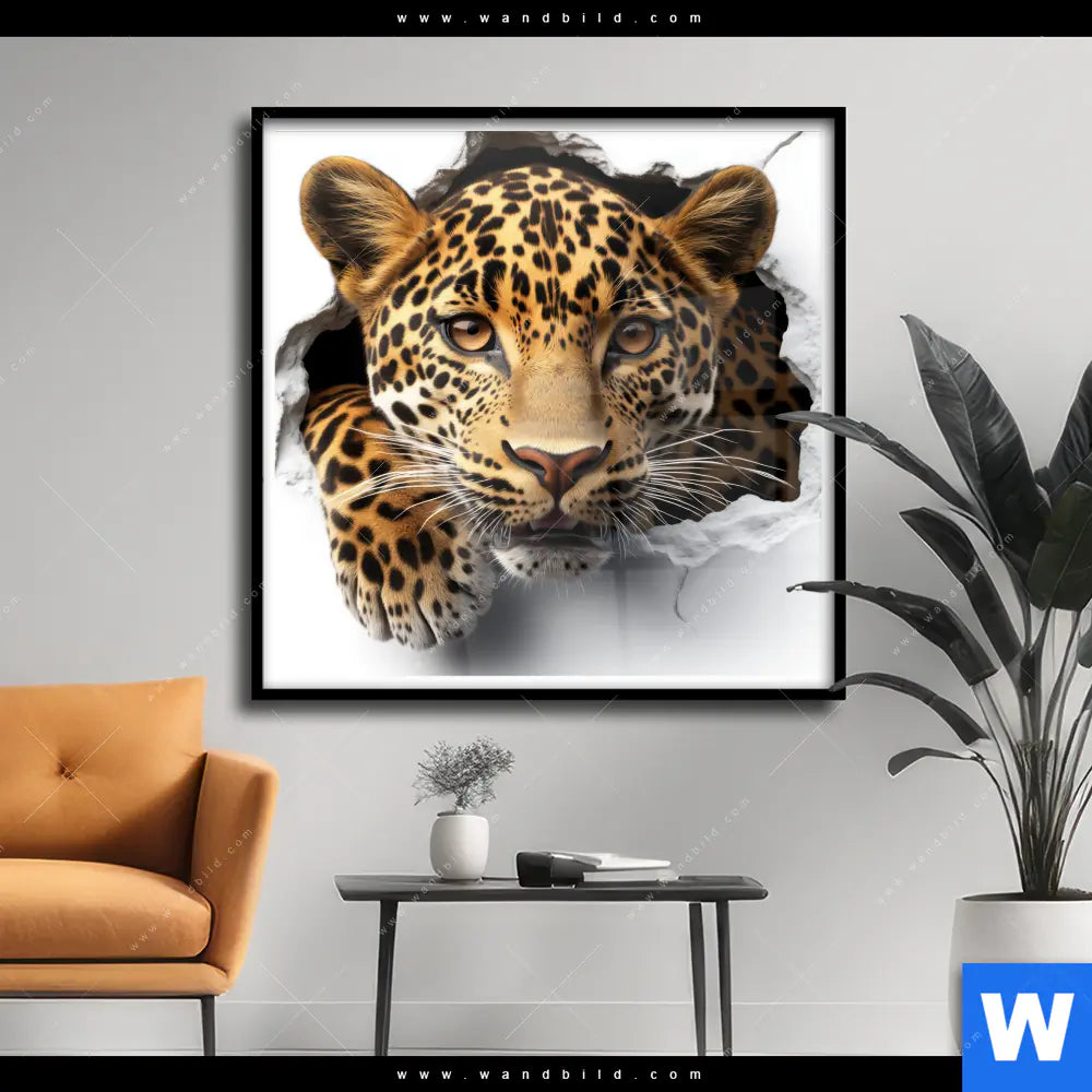 Poster | Wanddurchbruch - Leopard | Quadrat