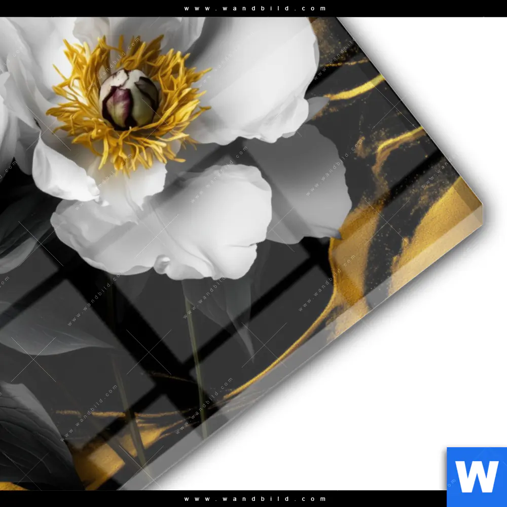 Acrylglasbild | Weiße Blumen mit Gold | Hochformat