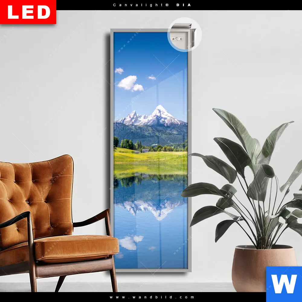 Canvalight® DIA Leuchtbild | Sommerlandschaft in den Alpen | Schmal