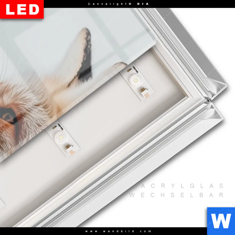 LED-Glasbild mit austauschbarem Acrylglas-Druck (Wechselbild)
