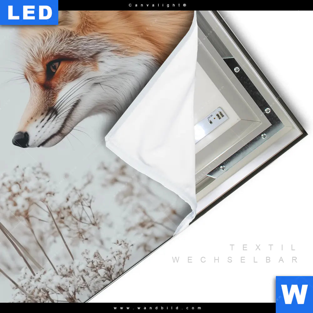 Canvalight® TEX Leuchtbild | Winterstille - Der Fuchs | Quadrat