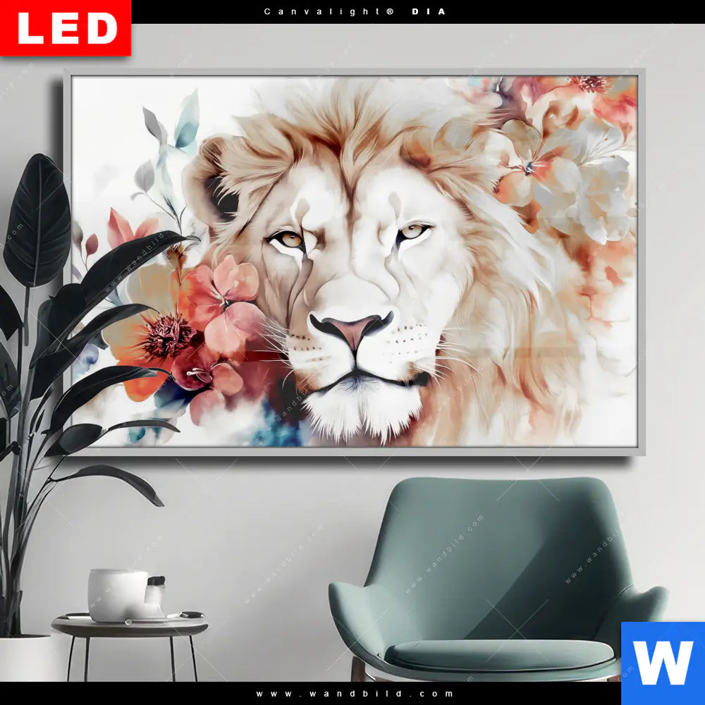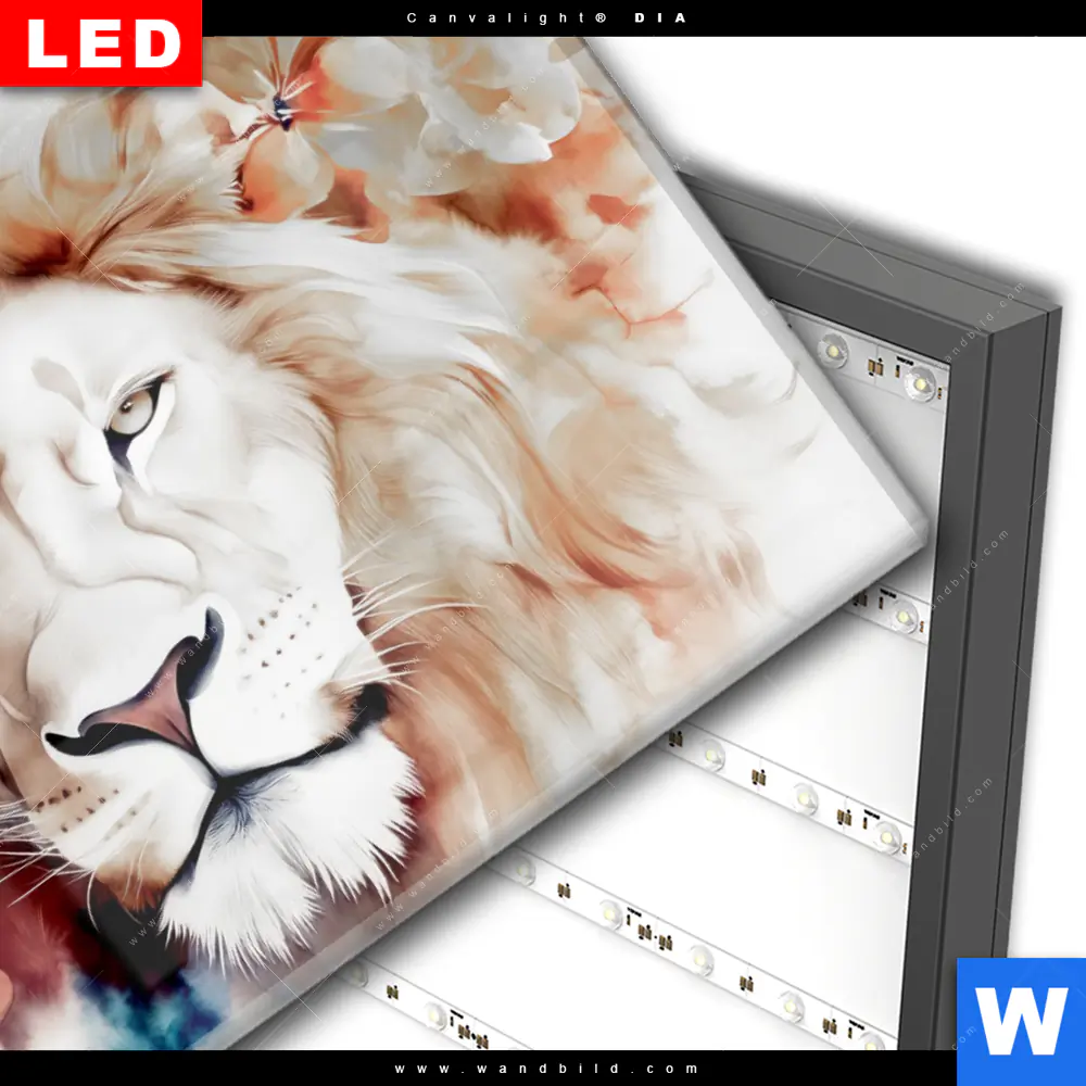 Wechselmotiv Acrylglas Canvalight® DIA | Löwe mit Blumen | Querformat