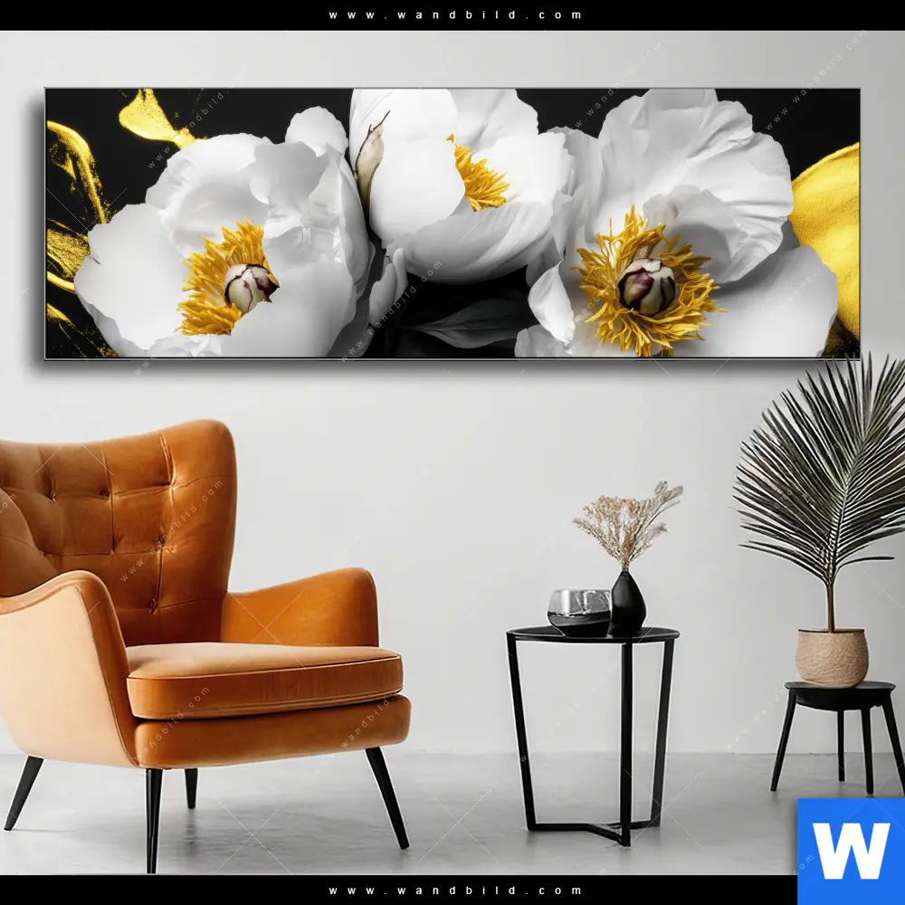 Wechselmotiv | Weiße Blumen mit Gold | Panorama