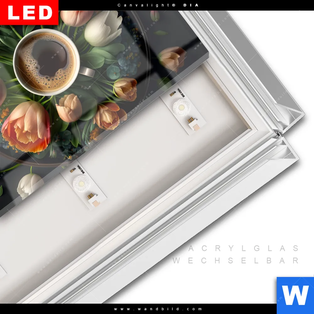 LED-Glasbild mit austauschbarem Acrylglas-Druck (Wechselbild)