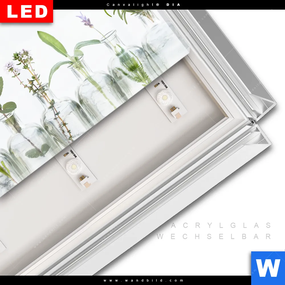 LED-Glasbild mit austauschbarem Acrylglas-Druck (Wechselbild)