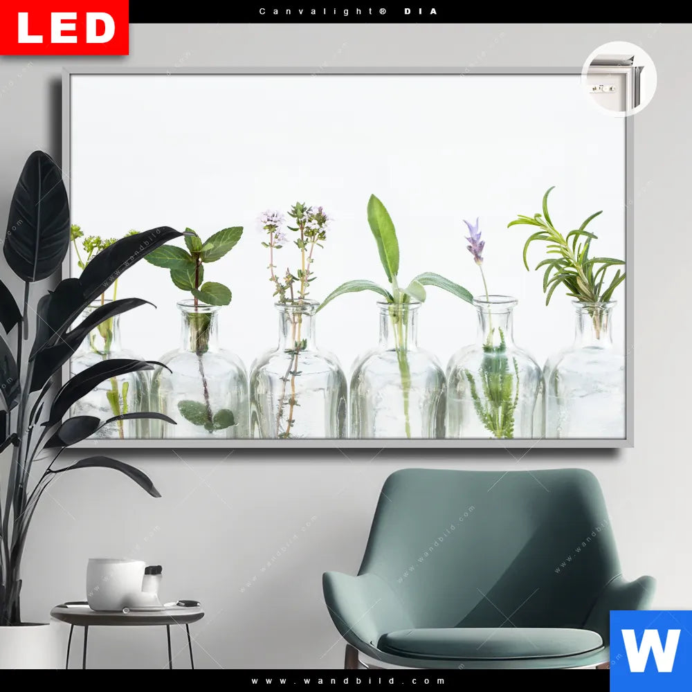 Canvalight® DIA Leuchtbild | Kräuter in Flaschen | Querformat