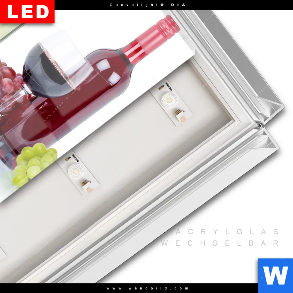 LED-Glasbild mit austauschbarem Acrylglas-Druck (Wechselbild)