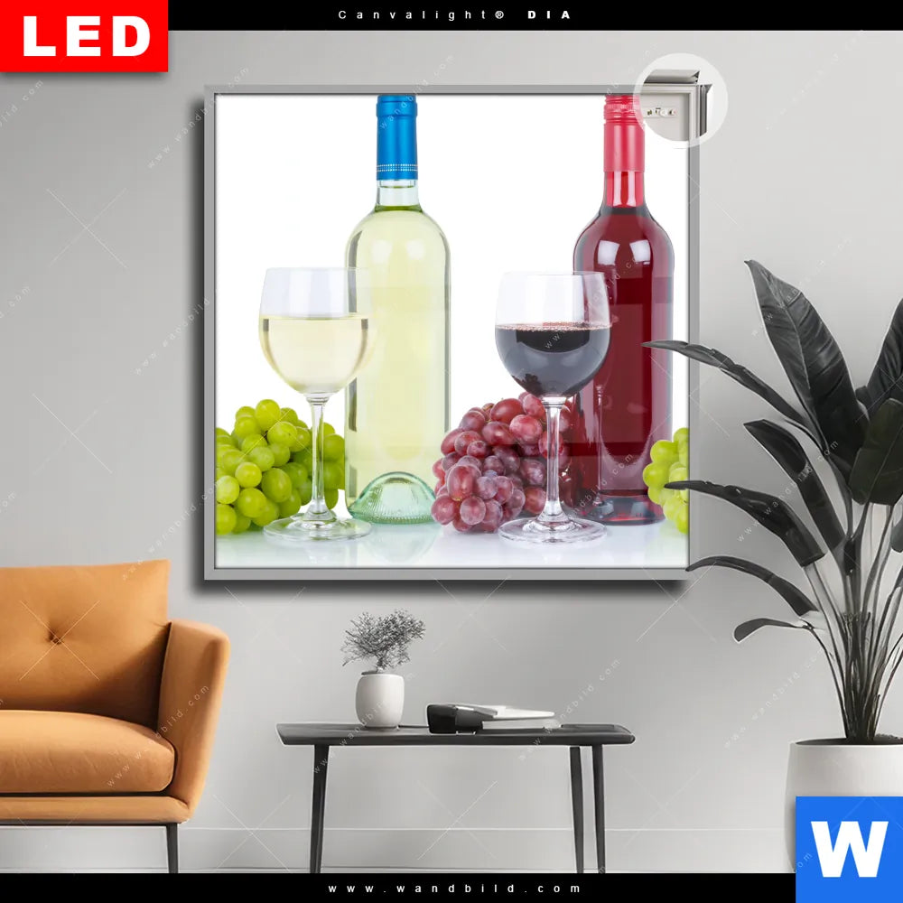 Canvalight® DIA Leuchtbild | Wein in Flaschen und Gläsern | Quadrat