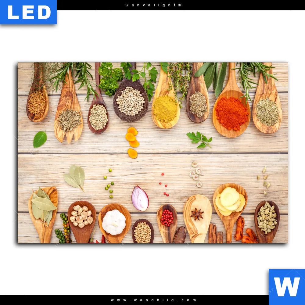 Canvalight® Leuchtbild | Gewürze auf hölzernen Löffeln | Querformat