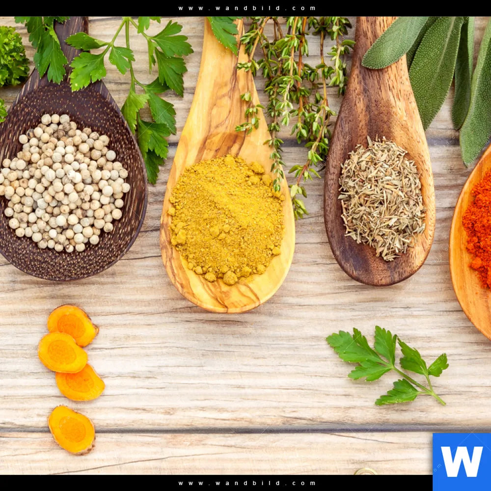 Canvalight® TEX Leuchtbild | Gewürze auf hölzernen Löffeln | Querformat