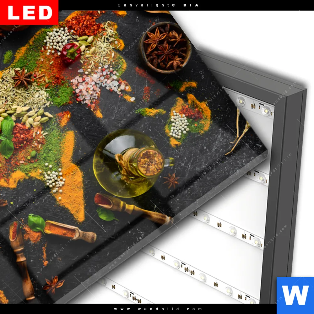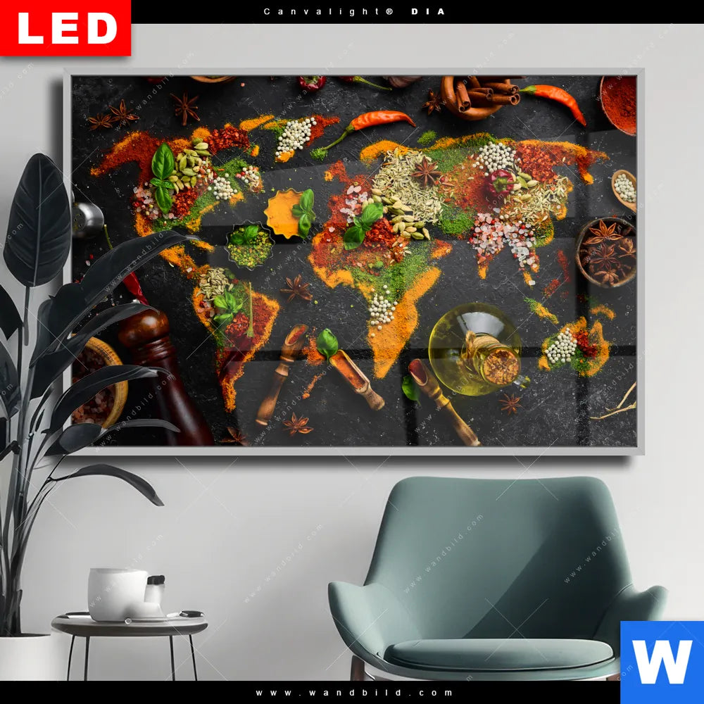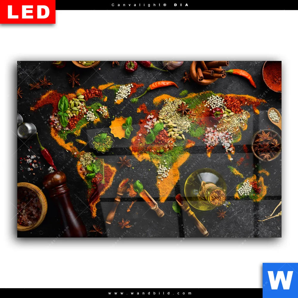 Wechselmotiv Acrylglas Canvalight® DIA | Die Weltkarte der Gewürze | Querformat