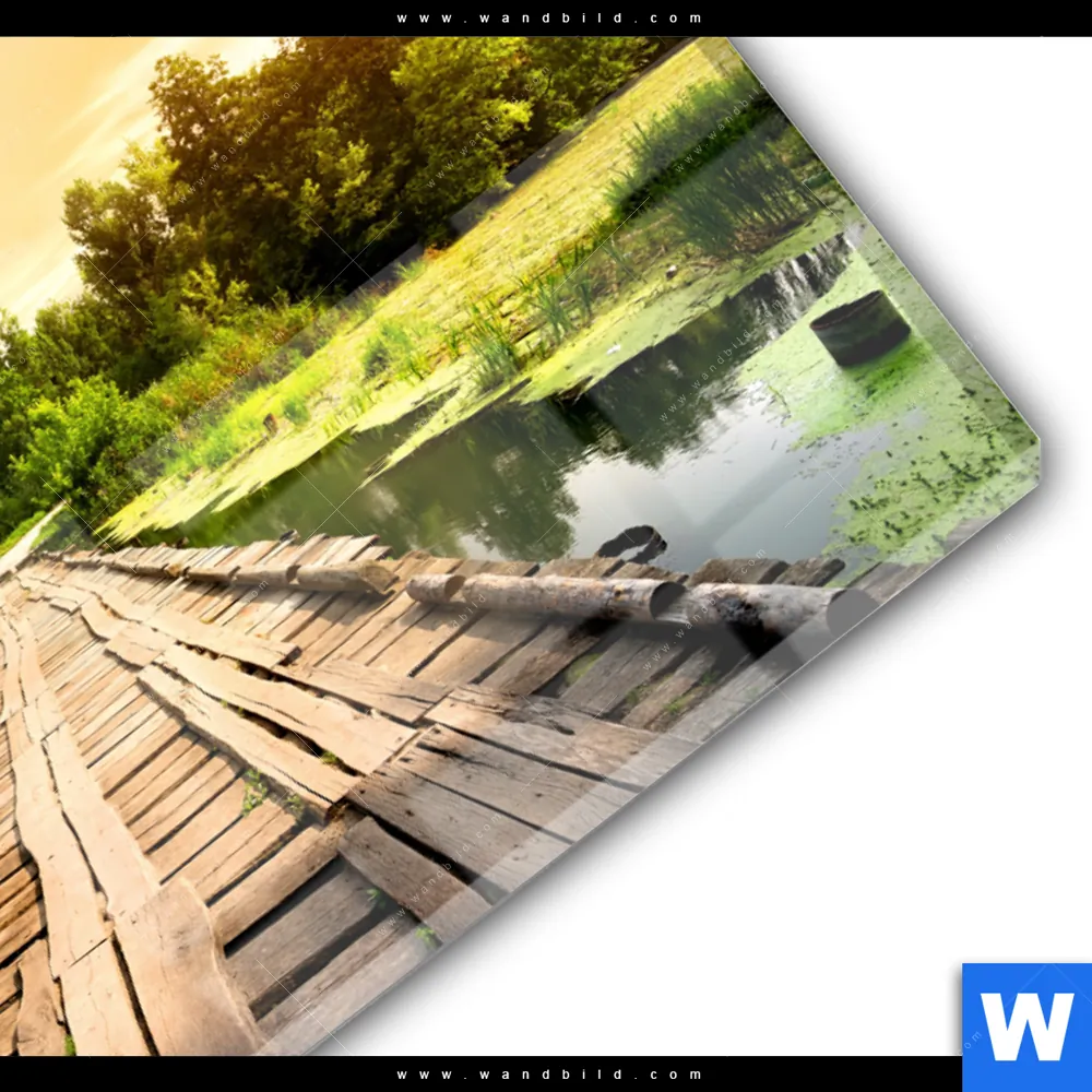 Acrylglasbild | Alte Brücke am Fluss | Querformat