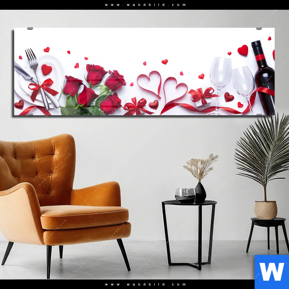 Acrylglasbild | Romantik mit Rotwein | Panorama
