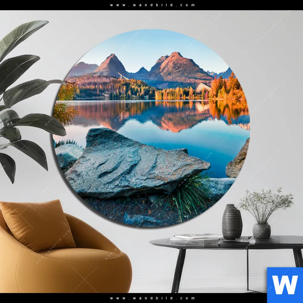 Alu-Dibond Bild | Abendszene mit Bergen und See | Rund