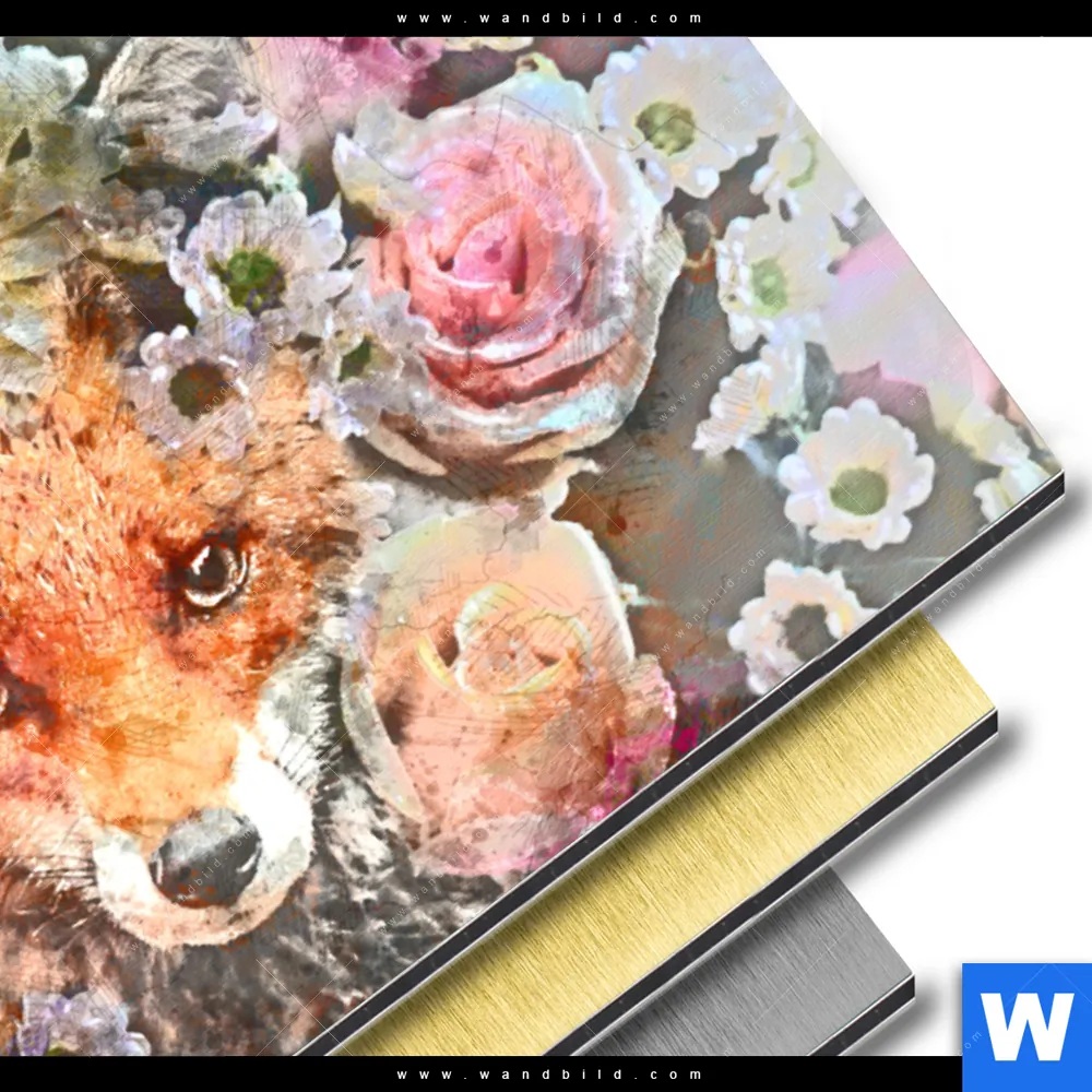 Aluminiumbild gebürstet | Fuchs & Blumen | Querformat