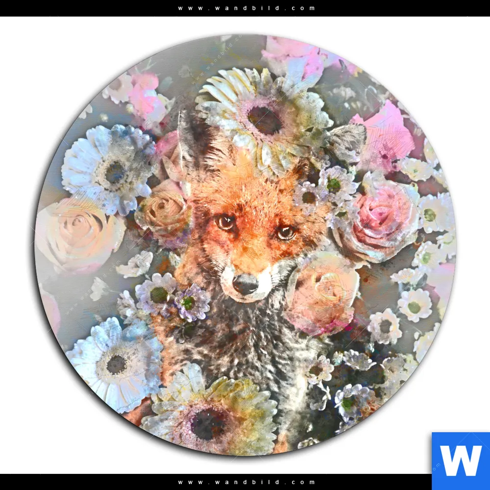 Aluminiumbild gebürstet | Fuchs & Blumen | Rund