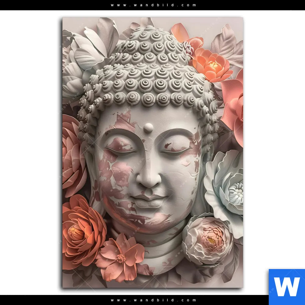 Aluminiumbild gebürstet | Pastellblüten und Buddha | Hochformat