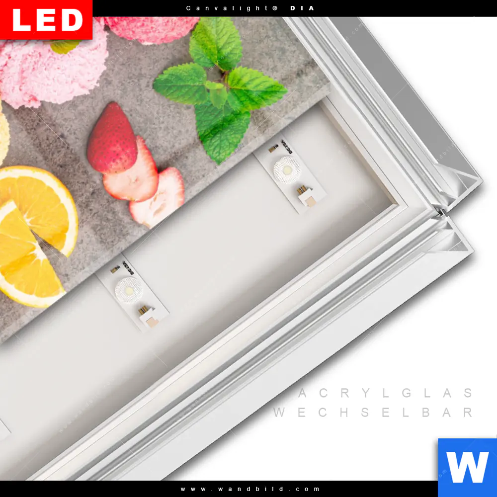 LED-Glasbild mit austauschbarem Acrylglas-Druck (Wechselbild)