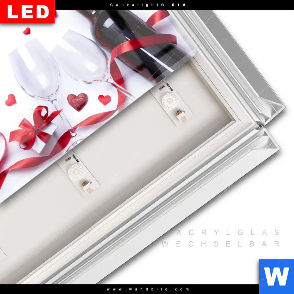 Canvalight® DIA Leuchtbild | Romantik mit Rotwein | Querformat