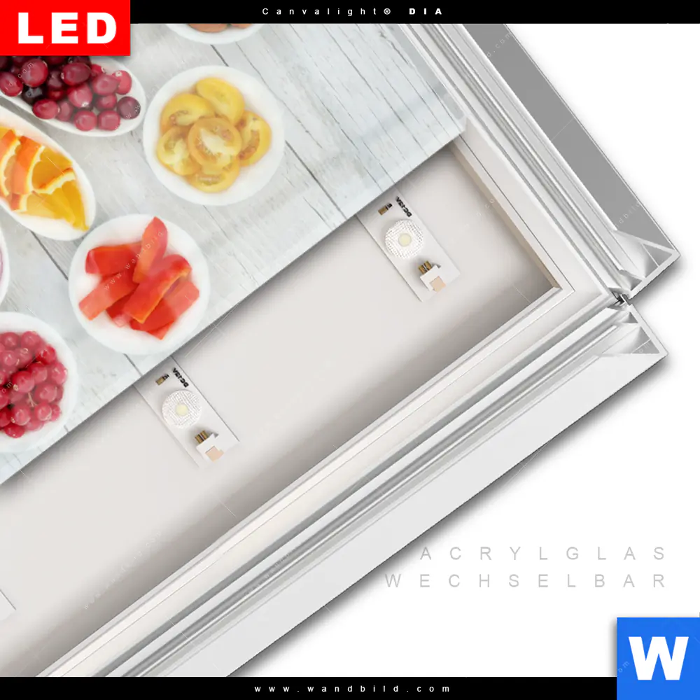 LED-Glasbild mit austauschbarem Acrylglas-Druck (Wechselbild)