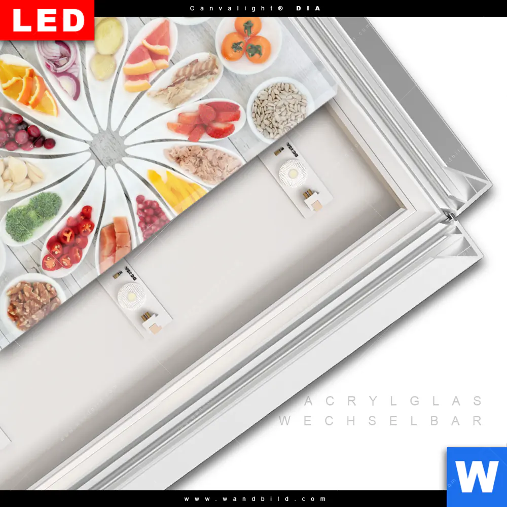 LED-Glasbild mit austauschbarem Acrylglas-Druck (Wechselbild)