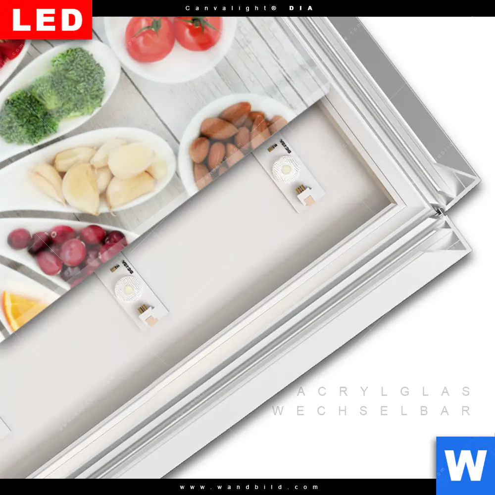 Canvalight® DIA Leuchtbild | Superfoods im Farbkreis | Schmal