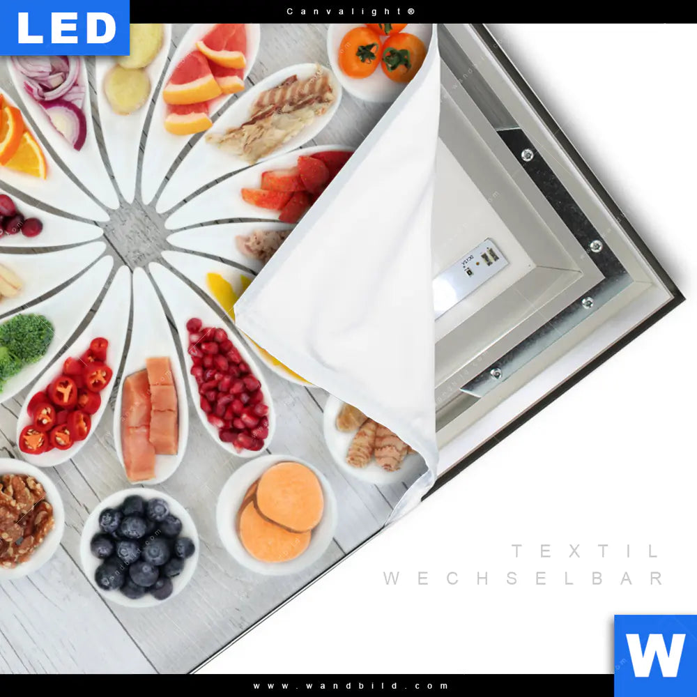 LED-Textilrahmen-Bild mit austauschbarem Essen - Trinken Textil-Druck (Wechselbild)