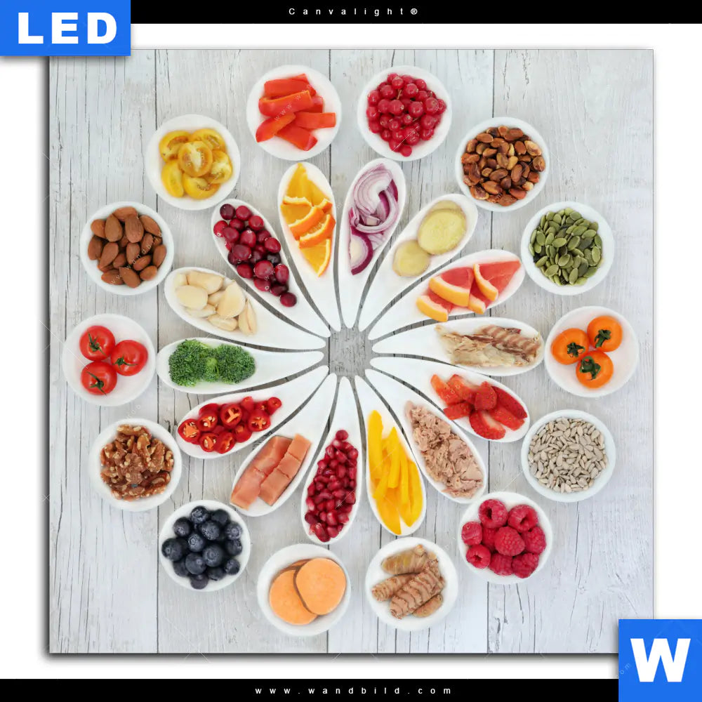 Canvalight® TEX Leuchtbild | Superfoods im Farbkreis | Quadrat