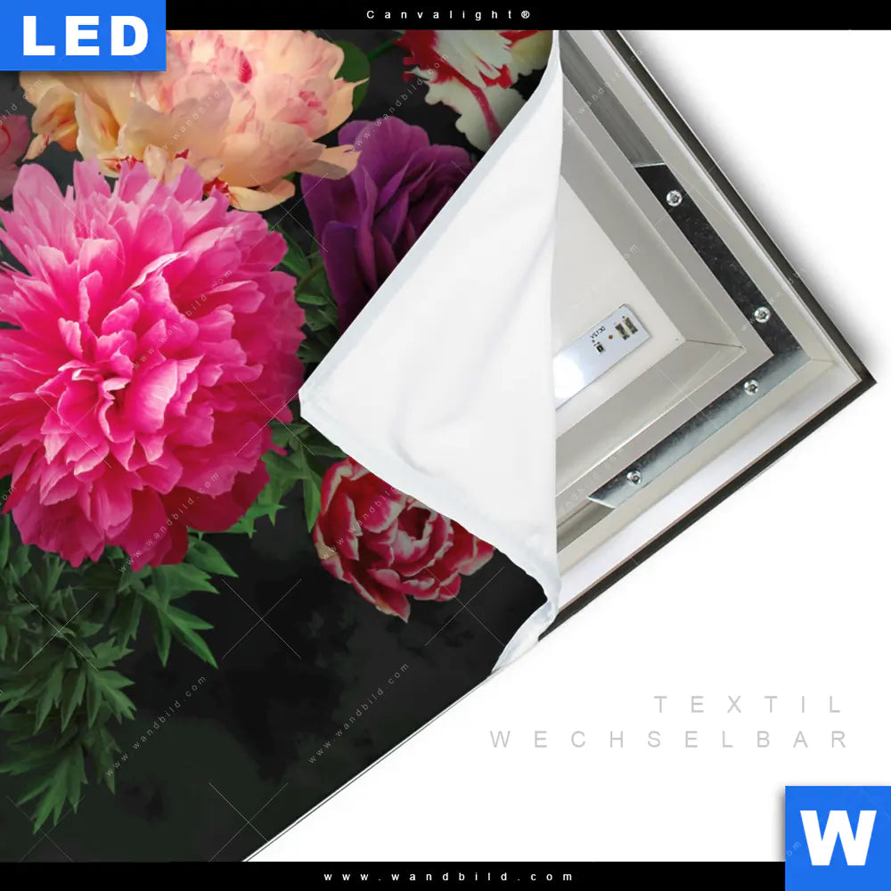 LED-Textilrahmen-Bild mit austauschbarem Blumen - Botanik Textil-Druck (Wechselbild)