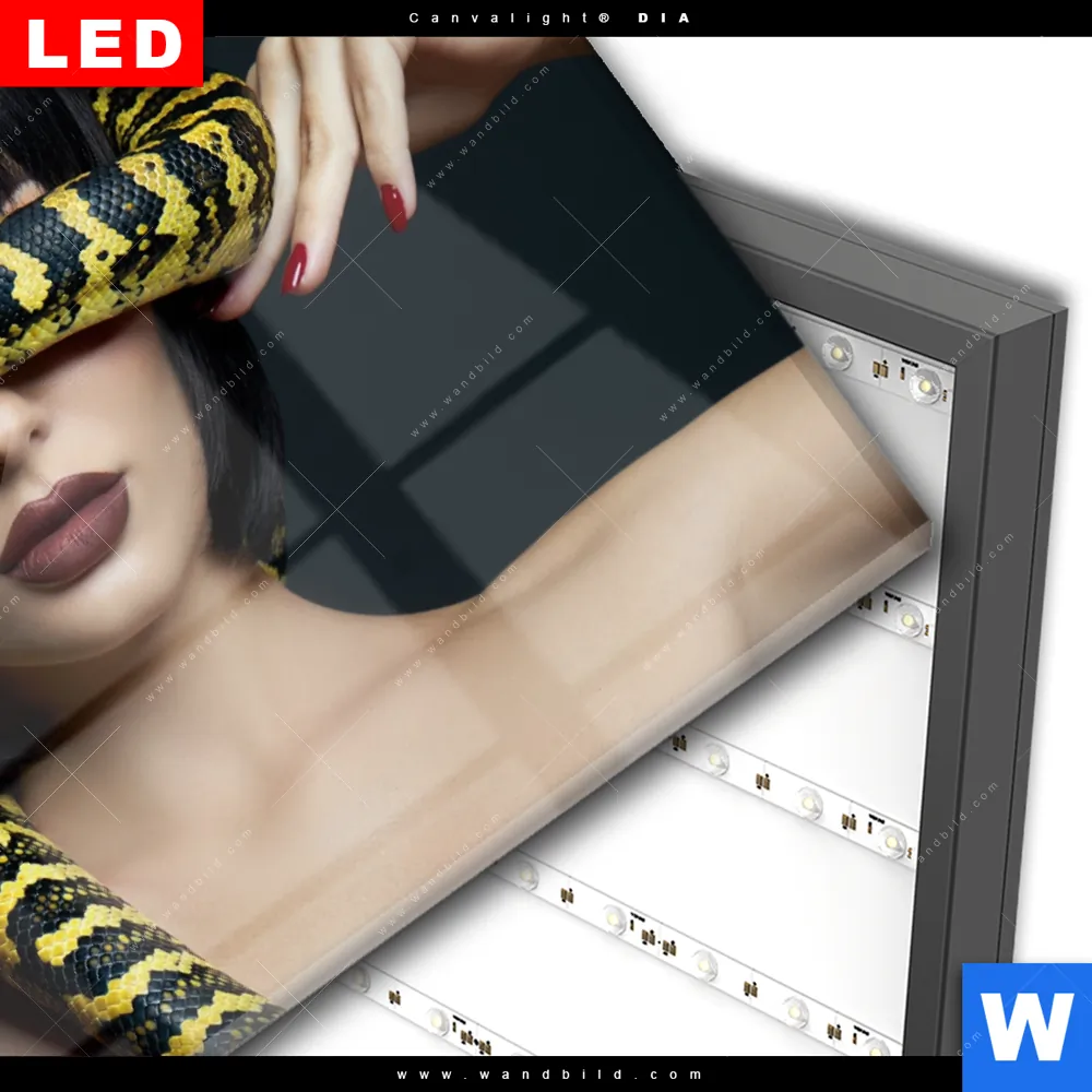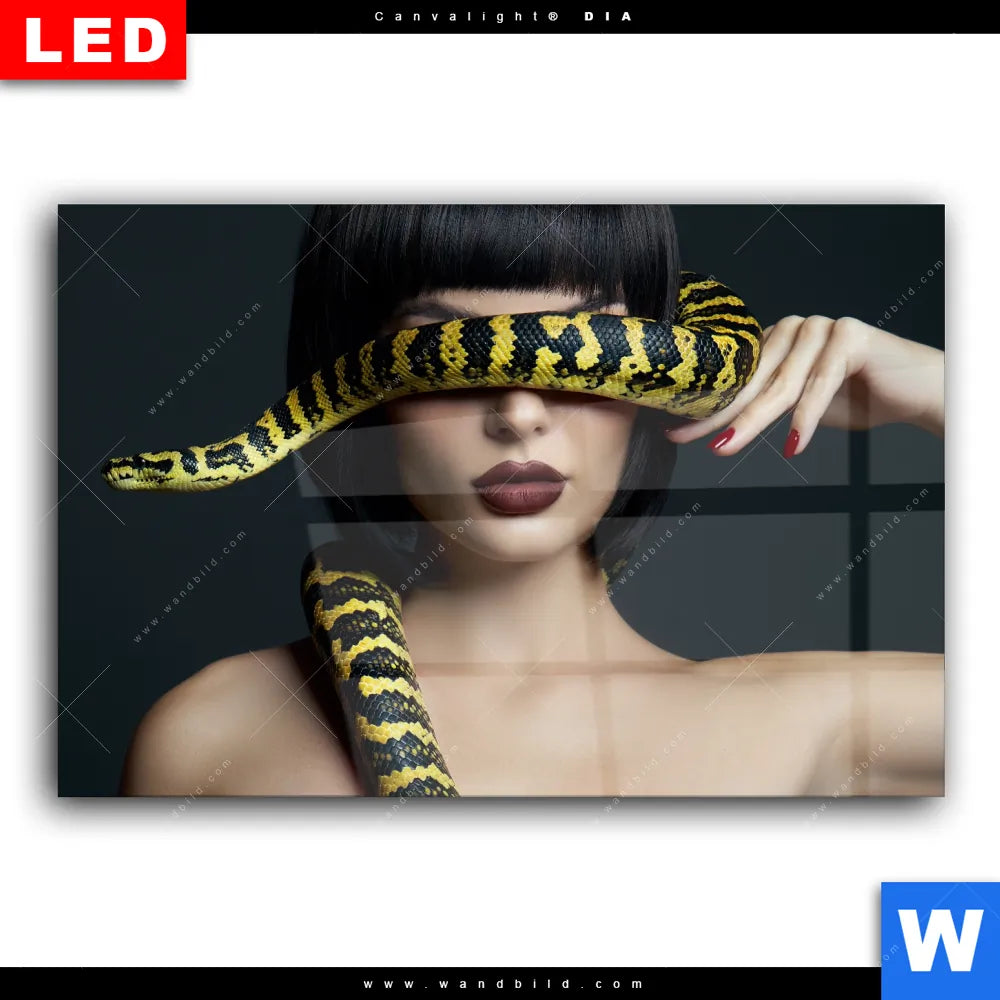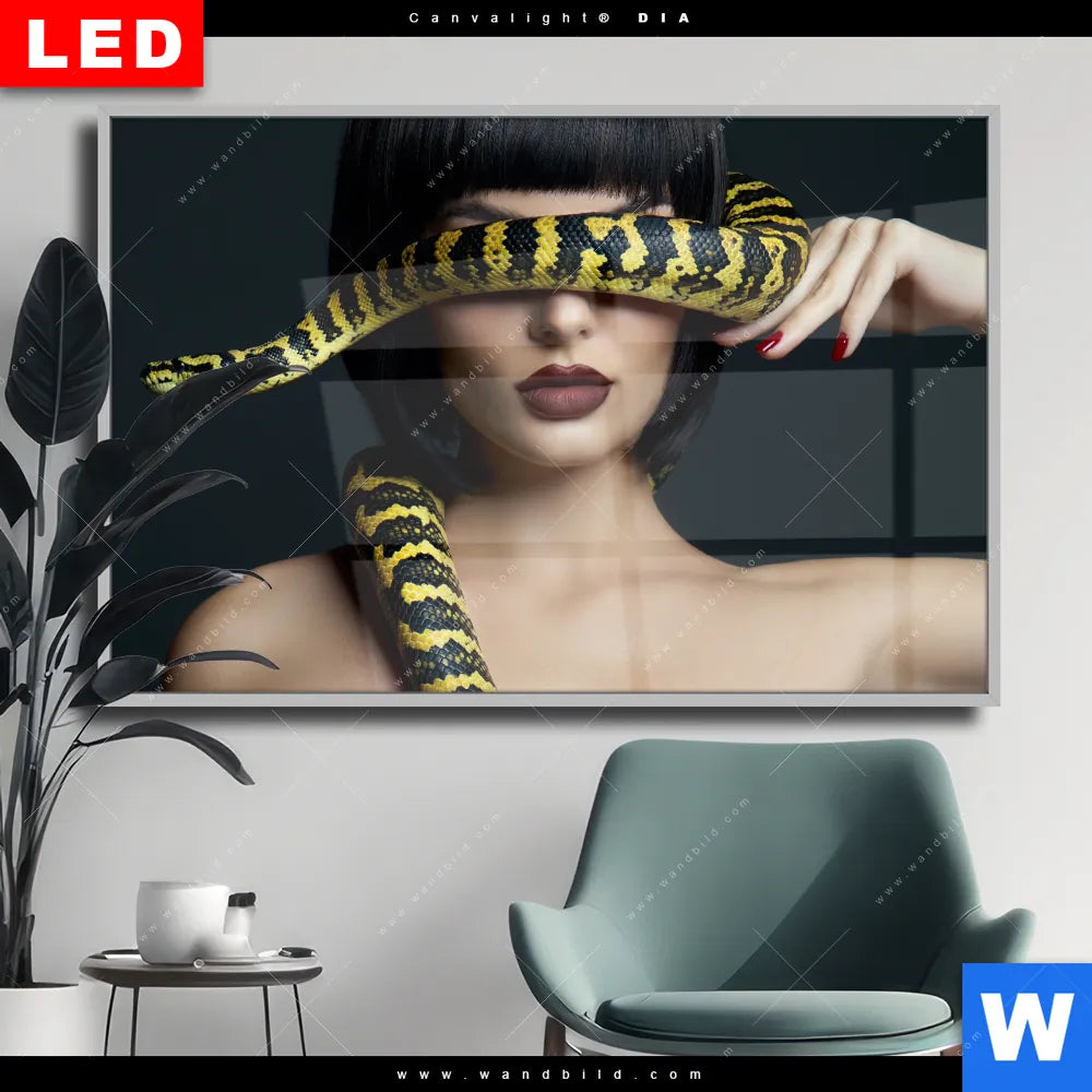 Wechselmotiv Acrylglas Canvalight® DIA | Frau mit gelber Schlange | Querformat