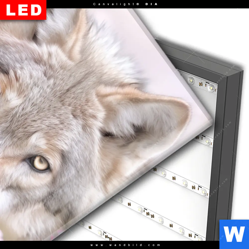 Wechselmotiv Acrylglas Canvalight® DIA | Friedlicher Wolf | Hochformat