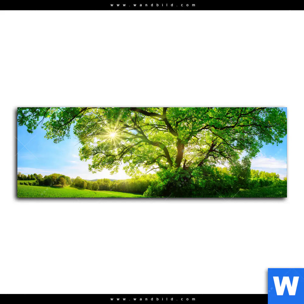 Aluminiumbild gebürstet | Sonnendurchfluteter Baum | Panorama