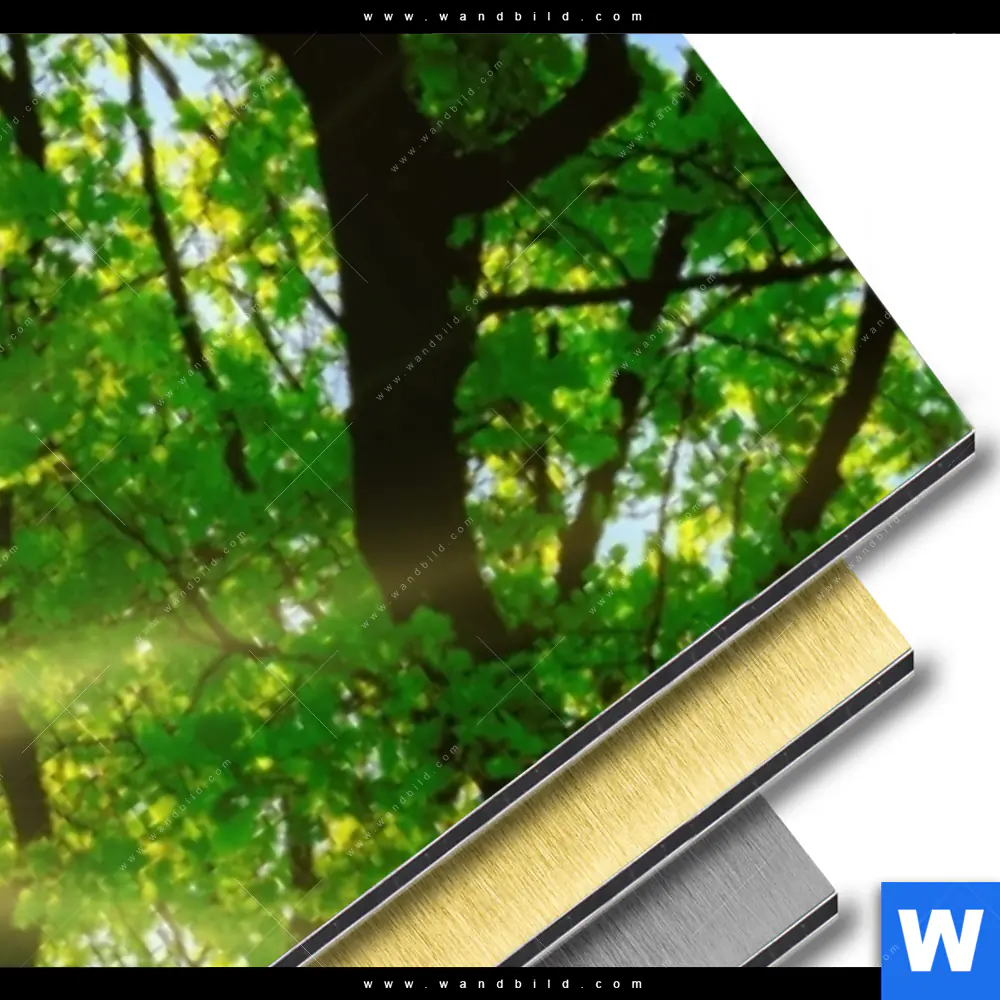 Landschaften, Wald - Bäume Aluminiumbild mit metallischem Effekt inkl. vormontiertem Rückrahmen