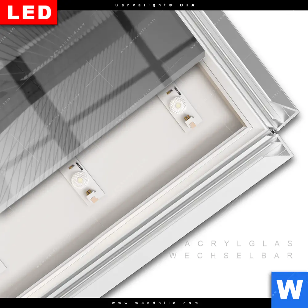 LED-Glasbild mit austauschbarem Acrylglas-Druck (Wechselbild)