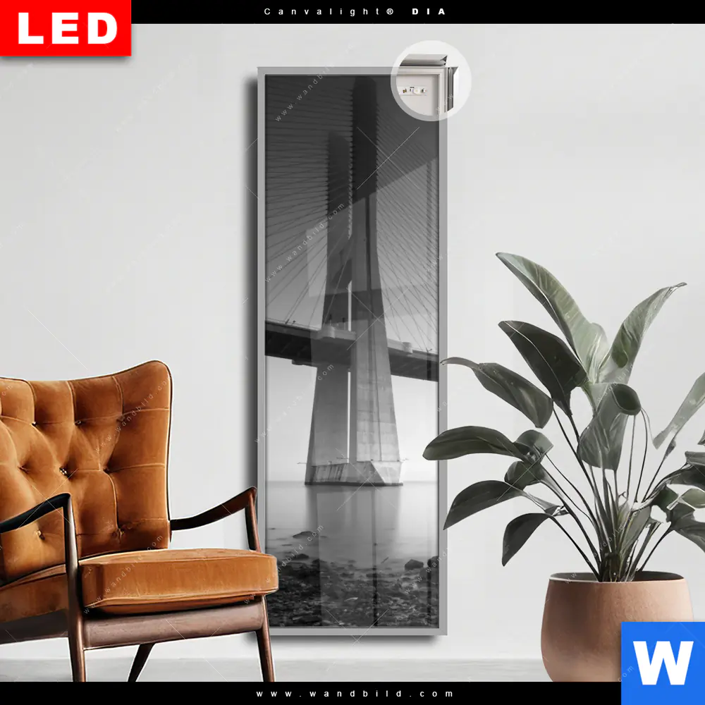 Canvalight® DIA Leuchtbild | Brücke am weiten Meer | Schmal